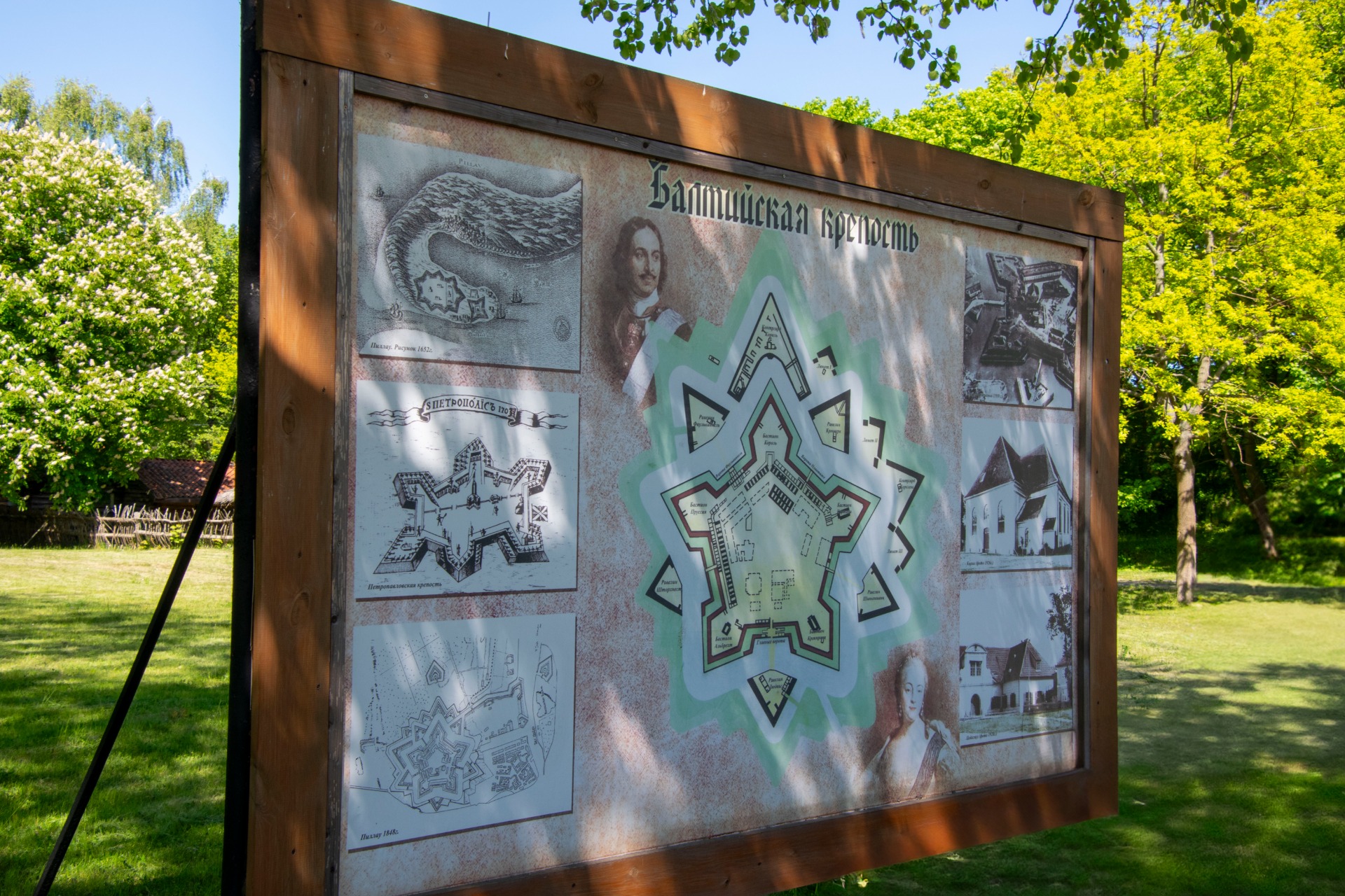 The Coat of Arms of the Russian Empire hangs above the entrance to the fortress. By the way, the Russian coat of arms hung here during the Seven Years' War during the reign of Empress Elizabeth Petrovna in 1758.